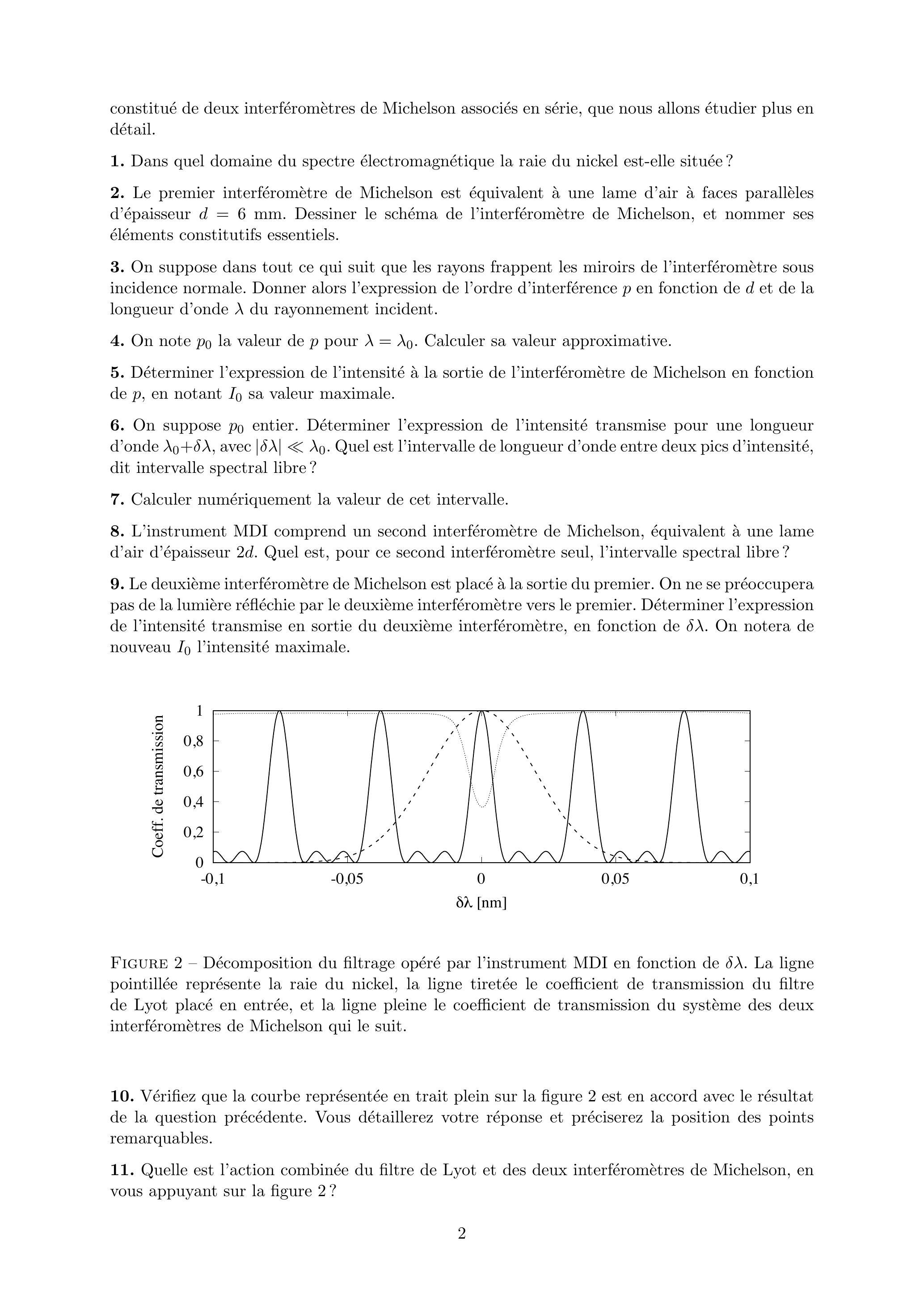 8. L'instrument MDI comprend un second interféromètre de Michelson, équivalent à une lame d'air d'épaisseur . Quel est, pour ce second interféromètre seul, l'intervalle spectral libre?